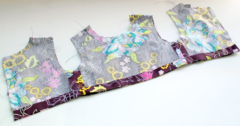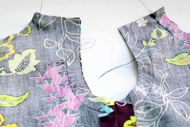 После того как вы стачаете плечевые швы, у вас останется открытой небольшая часть каждой из пройм.