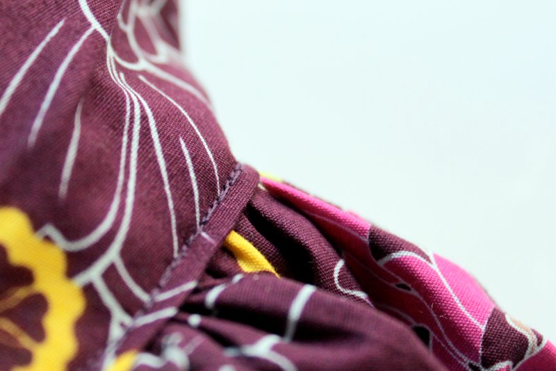Аккуратно тяните за нити, формируя сборку на юбке. Необходимо, чтобы верхняя часть юбки совпала по длине с низом лифа,а сборка была равномерной.