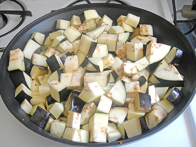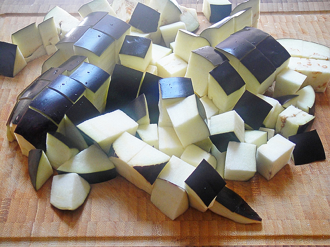 Баклажаны нарезать крупными кубиками.