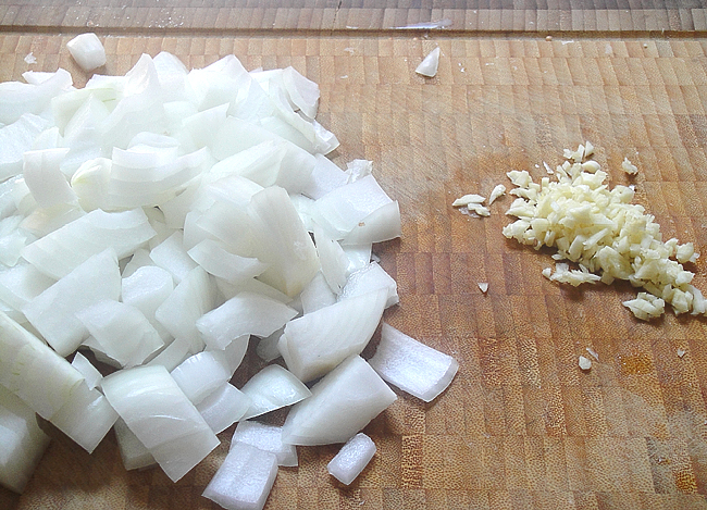 Чеснок мелко порубить, лук нарезать произвольно.