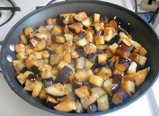 Следим, что бы не пережарить, кусочки баклажанов должны сохранить свою форму.