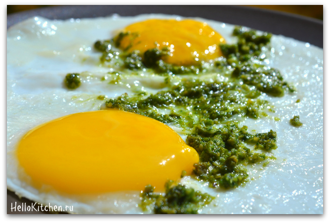 4. А это мой завтрак: яичница глазунья с песто. Вкусно, словами не описать!