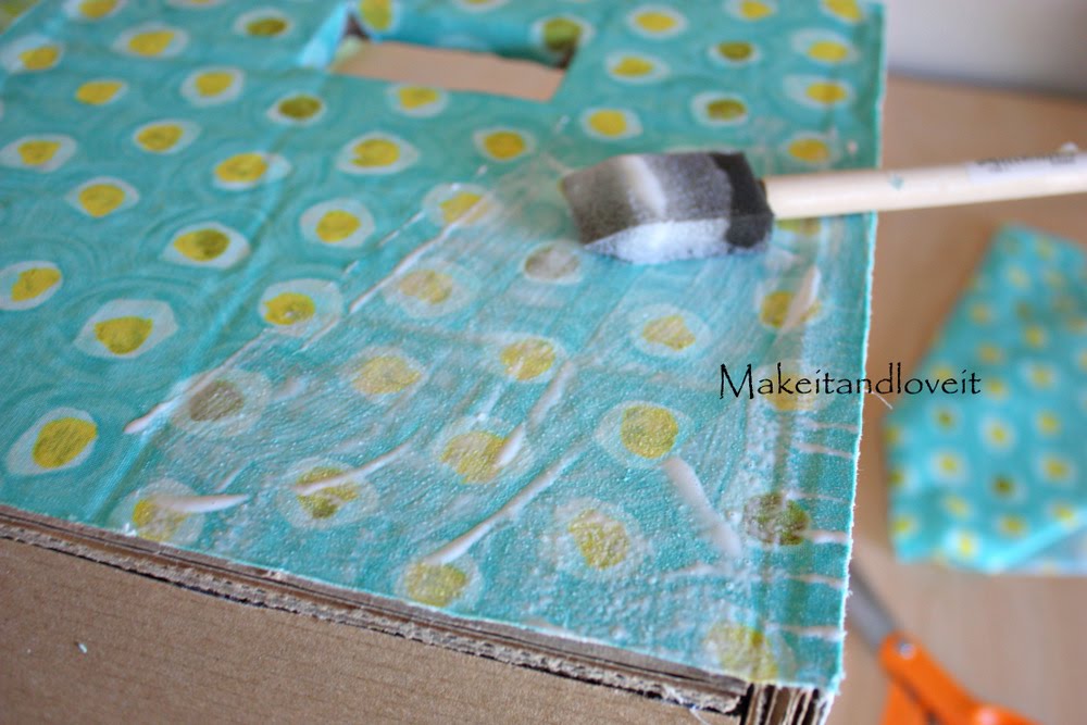 ....... А потом применить еще один слой (достаточно толстый) Мод Podge поверх ..... убедившись, что моделирование Podge все необработанные края ткани и прижимая их плотно к коробке.