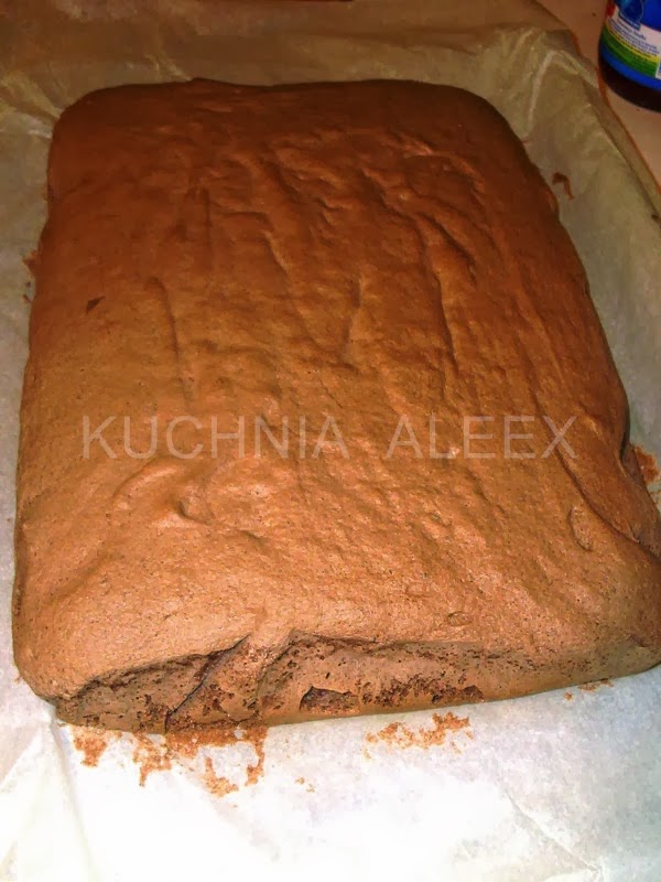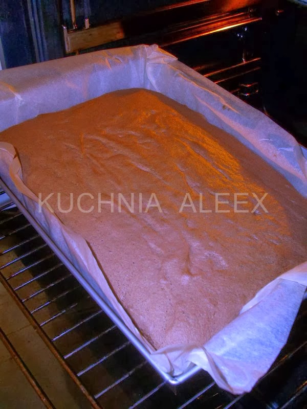 2 Бисквитный торт пекут в противене размерами 22x37 -40 минут в духовке, предварительно нагретой до 175 градусов по Цельсию ( низ + горячий воздух).