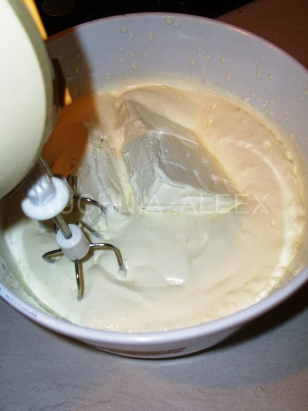 7 Для крема - в сливочный сыр добавить прохладное желе, перемешать в однородную массу.