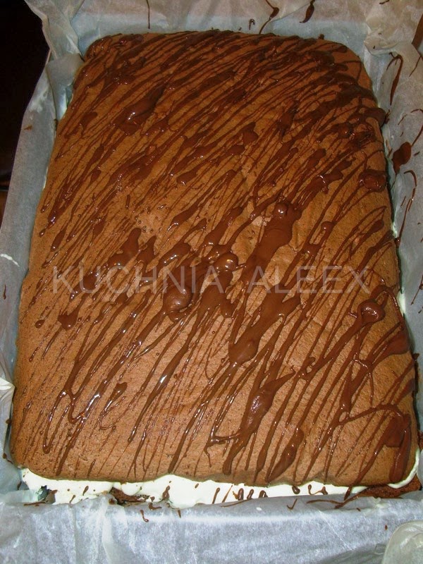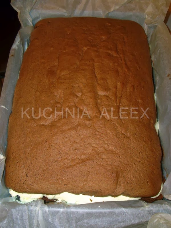 8 Крем положить на одну часть коржа,накрыть вторым коржом