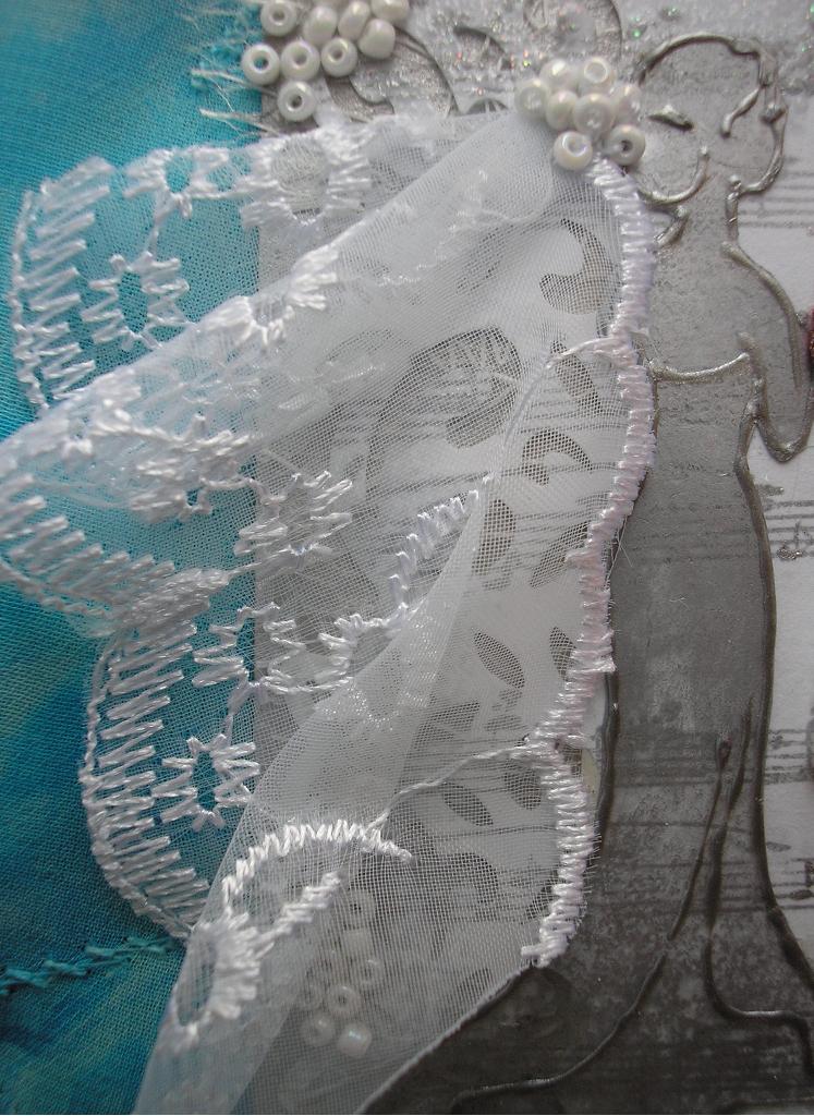 Основа - картон, тонированный соответствующими чернилами. Подложка - белый лист, обработанный фигурным дыроколом. Ася, твой подарочек нашел себе место на первой АТС, а на второй - кружево от Светы Зайцевой) Спасибо вам, девочки!