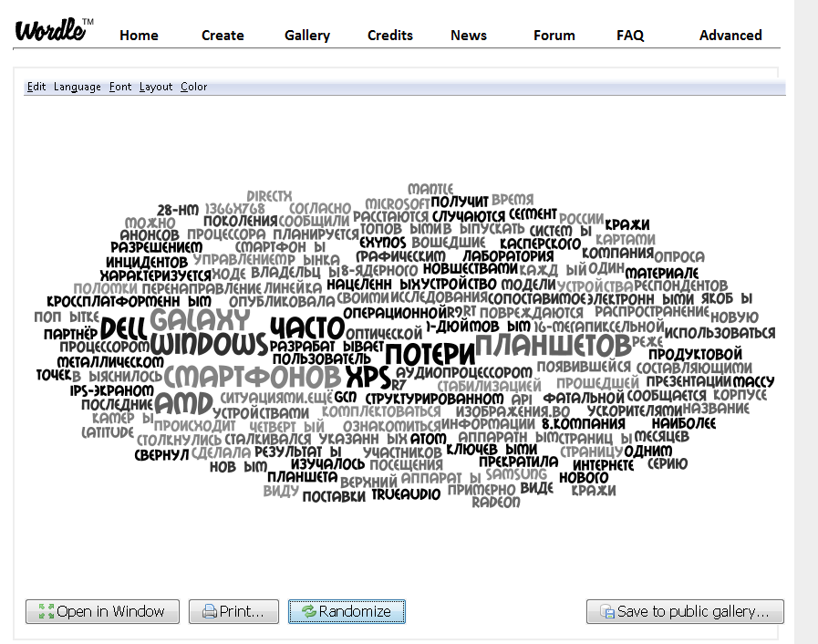 Сервис Wordle поможет вам создать один из таких текстовых коллажей. Для его создания необходимо указать адрес блога, после чего Wordle выполнит анализ содержимого RSS-ленты и из слов, которые в ней найдет, построит своего рода облако тегов. Рисунок, который вы получите с помощью сервиса, полезен еще и тем, что вы можете проследить, какие слова в вашем блоге встречаются чаще всего, — они будут крупнее и выделены цветом. А вот как выглядит текстовый коллаж для нашего сайта.