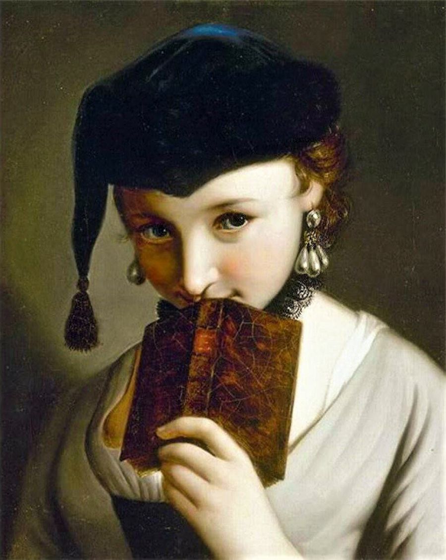 Портретом юной прелестницы можно назвать знаменитую «Девушку с книгой». Столько милого озорства, весёлого любопытства в этом живом лукавом взгляде исподлобья, столько юношеской самоуверенности в неотразимости своих чар! Кем бы ни была эта юная незнакомка, благодаря таланту художника её образ стал аллегорическим намёком всем молодым особам проявлять интерес к чтению.