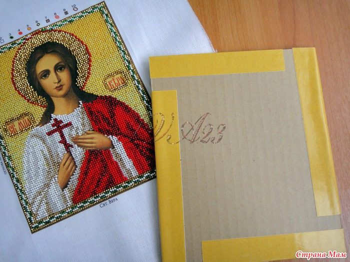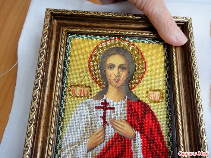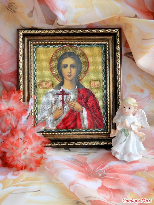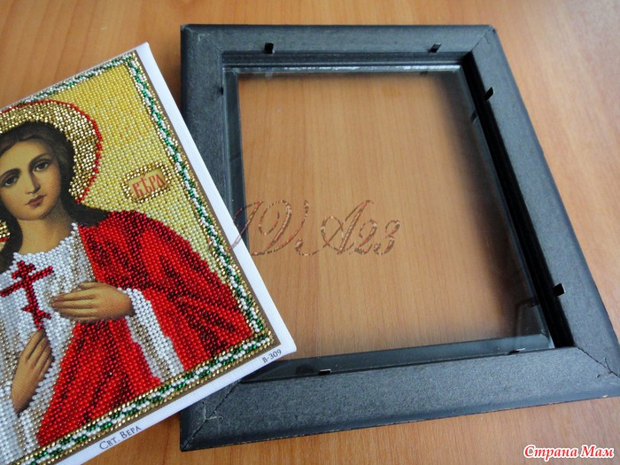 К своему великому счастью, я увидела в витрине магазинчика эти две рамки, которые изготавливаются специально для икон РБ из ювелирного бисера... Купила их обе, так как еще планирую вышить такую же для своей сестры Любы, и буду ждать и верить, что РБ выпустит и Святую Надежду, это уже будет для мамы...