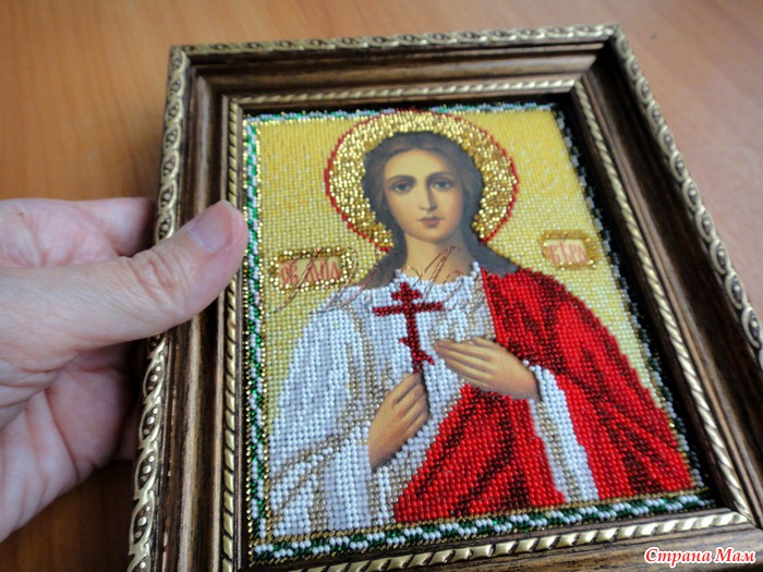 Для своей Святой я икону вышила, но с оформлением задержалась.. Да и на дачу умотала...