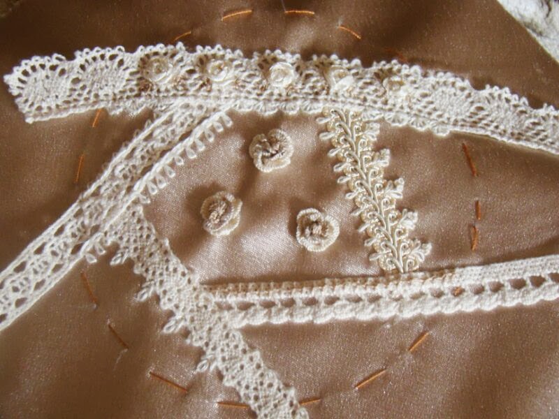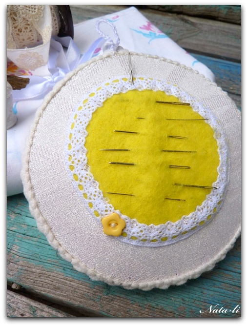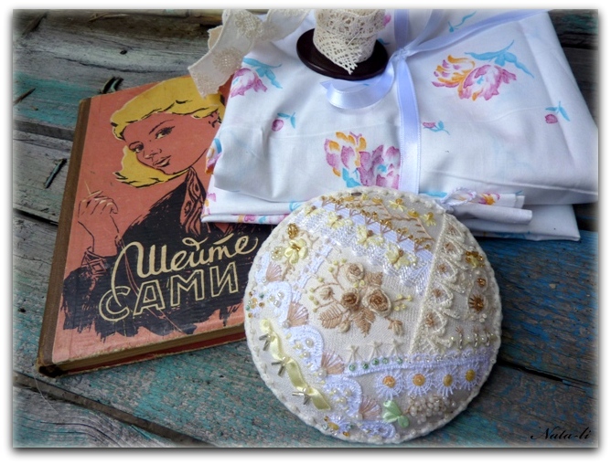 Если вам кажется, что композиция слишком "зажата" - не волнуйтесь - при придании игольнице объема по бокам захватится 1-1,5 см свободного пространства и незашитого кружева. Это добавит композиции необходимого "воздуха".