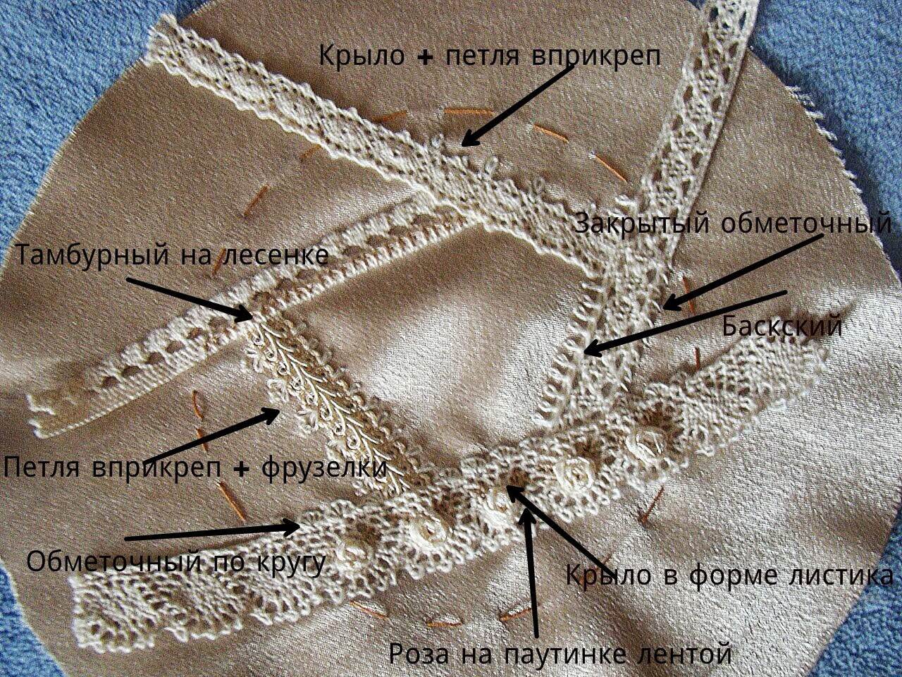 швом "Елочка". Если вы уже использовали этот шов при расшивке кружева, можете вышить любой другой из образцов