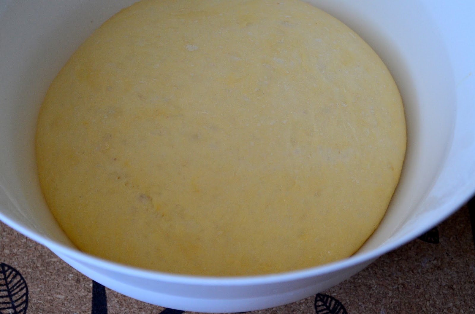 3. всыпать муку и замесить тесто. Его надо как следует вымесить, чтобы оно не было липким, но в тоже время осталось мягким!тесто скатать в шар и выложить в миску, смазанную ратсительным маслом. Оставить на час - полтора, накрыв полотенцем чтобы тесто увеличилось вдвое! Время примерное..так как у всех разная атмосфера и температура в доме.