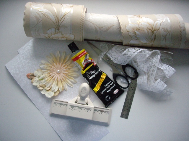 2. Замеряем нашу кастрюльку, чтобы отрезать нужный кусочек от обоев.
