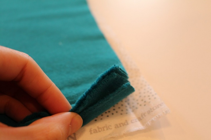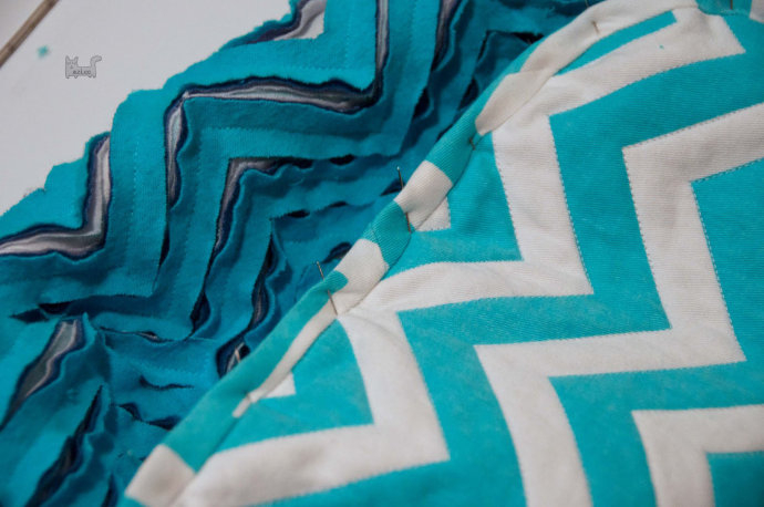 Скрепить булавками по периметру заготовки.
