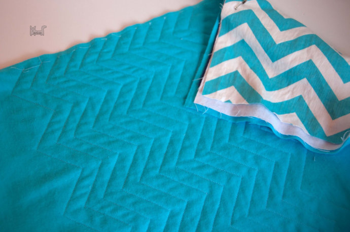 Можно прокладывать строчки под углом не 45 градусов, а 30, но никак не по долевой или поперечной нити. Следующие строчки прокладываются параллельно первой строчке на одинаковом расстоянии друг от друга.