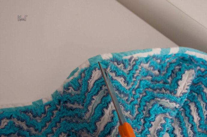 Прорезаем слои, кроме нижнего. Расстояние может варьироваться в зависимости от качества ткани и желания получить тот или иной эффект ткани, но в среднем это 1, 1,5 или 2 см.