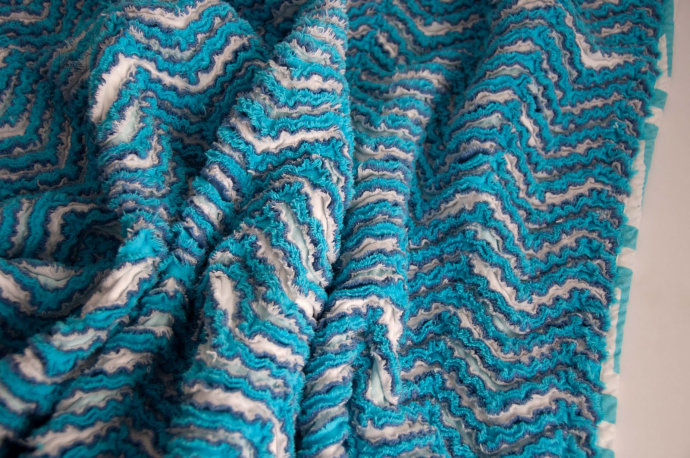 Если синель очень сильно разлохматить жесткой пластиковой щеткой, то получается эффект вельвета в очень крупный рубчик, мягкий и пушистый.