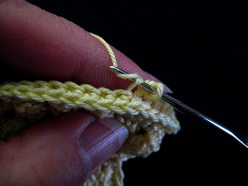 Перевернув вязание, обвязать получившиеся арки из возд.п. по 4-5 ст.б.н. (кол-во столбиков зависит от толщины нити).