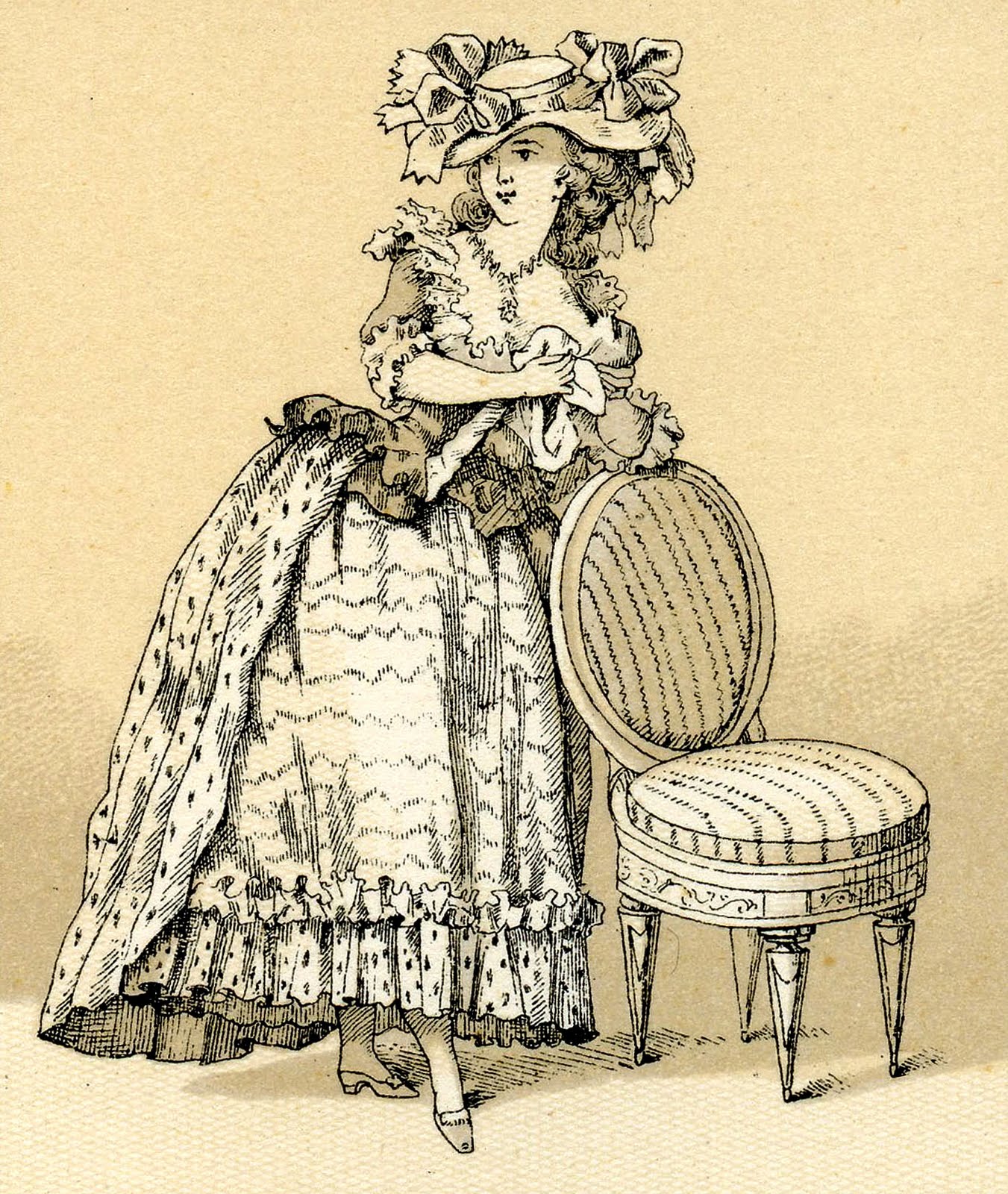 Vintage French Clip Art - Marie Antoinette-esque Lady with Chair