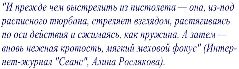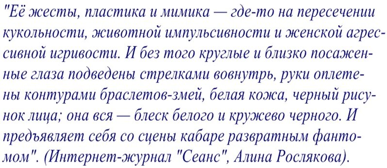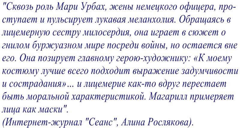 О ней есть что сказать ещё. Об экзотической игре актрисы и её влюблённости в актёрство.