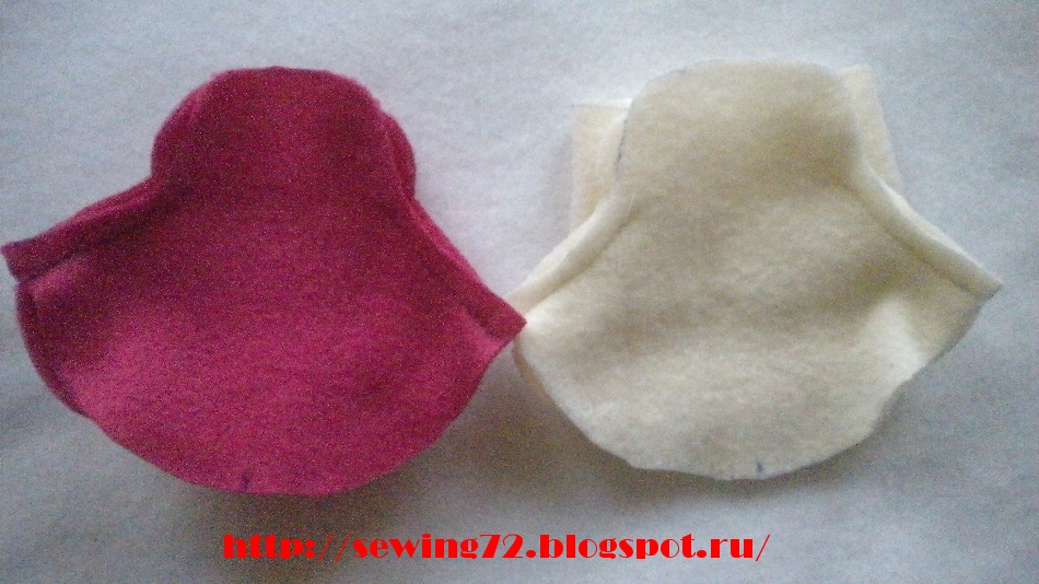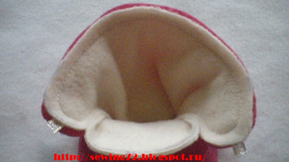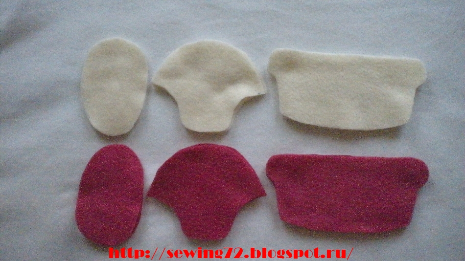 Для пошива пинеток мне понадобился флис двух цветов. Каждую деталь я раскроила по 2 шт каждого цвета, соблюдая долевую нить и размечая метки.
