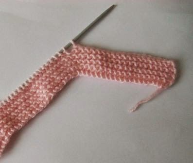 Таким образом, вязание начинает идти в обратном направлении. К мизинцу.