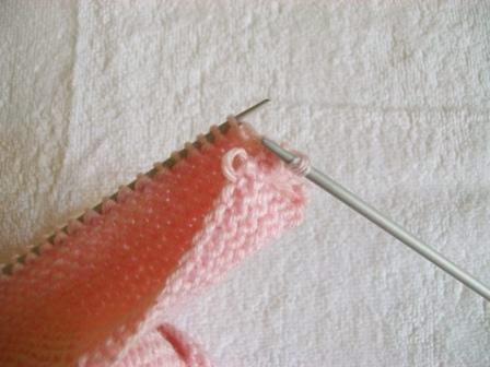 Затем закрываем столько петель, сколько нужно на длину мизинца.Последнюю петлю переводим на левую спицу.