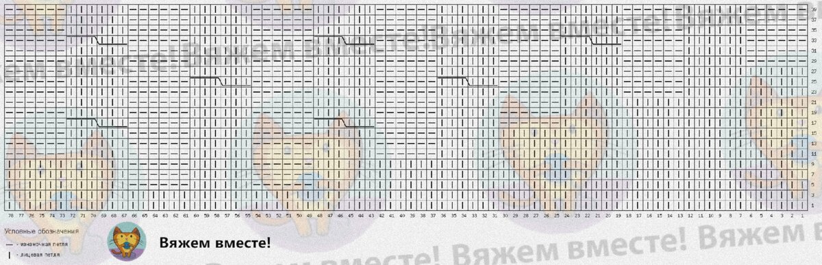 Схема ниже предназначена для вязания кокетки. На ней отображена правая половинка с частичкой левой части кокетки.