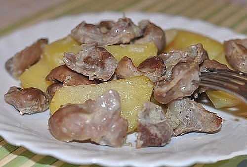 ТУШЕНЫЕ С ГРИБАМИ И КАРТОФЕЛЕМ КУРИНЫЕ ЖЕЛУДОЧКИ