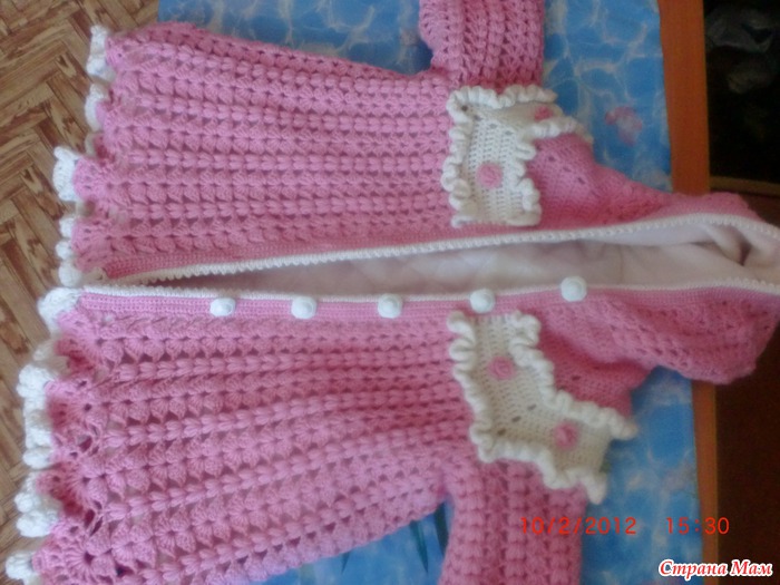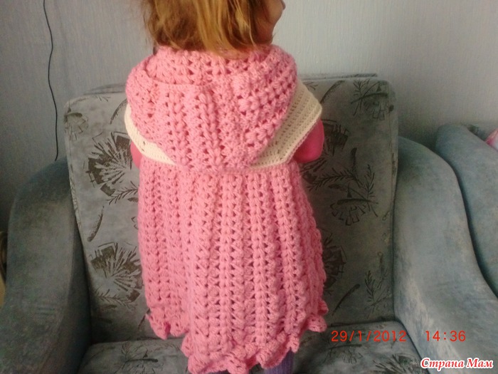 [показать]на пальто ушлло 200г белой.450розовой пряжи