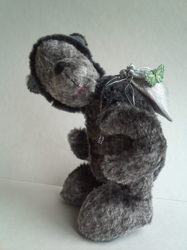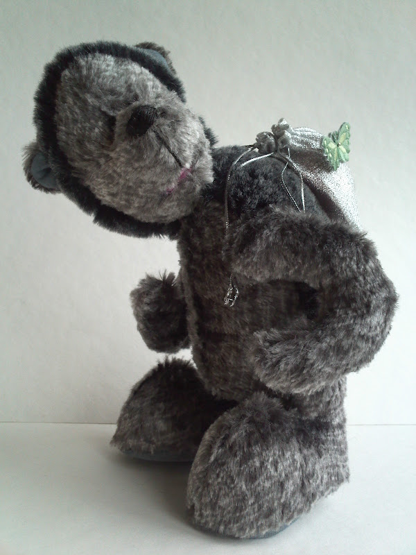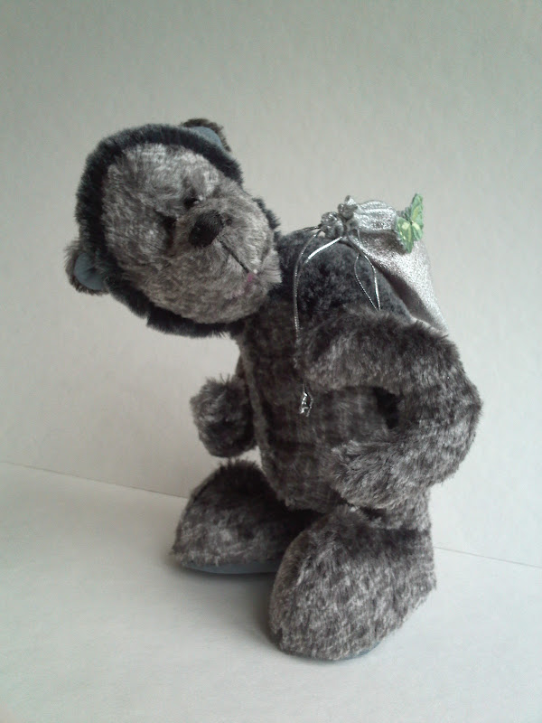 за неимением материала откладывала, но все же рискнула и хоть он из совсем не подходящего материала. сшит, получился довольно симпатичным, хоть в тоже время загадочным, слегка серьезным и немного суровым, на фото, в жизни он светлее и милее...)