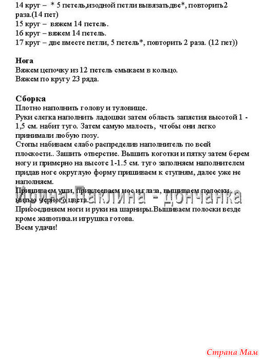 В ноги вставляем проволочку петелькой в лапку. проволочка должна быть на сантиметр длинее ноги, чтобы вставить в туловище, когда будем пришивать ноги.
