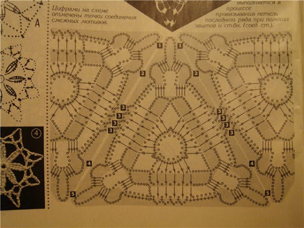 петли, 4 столбика с2 накидами в арку между столбиками с 3 накидами, 3