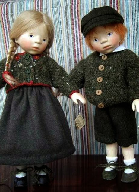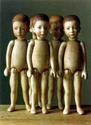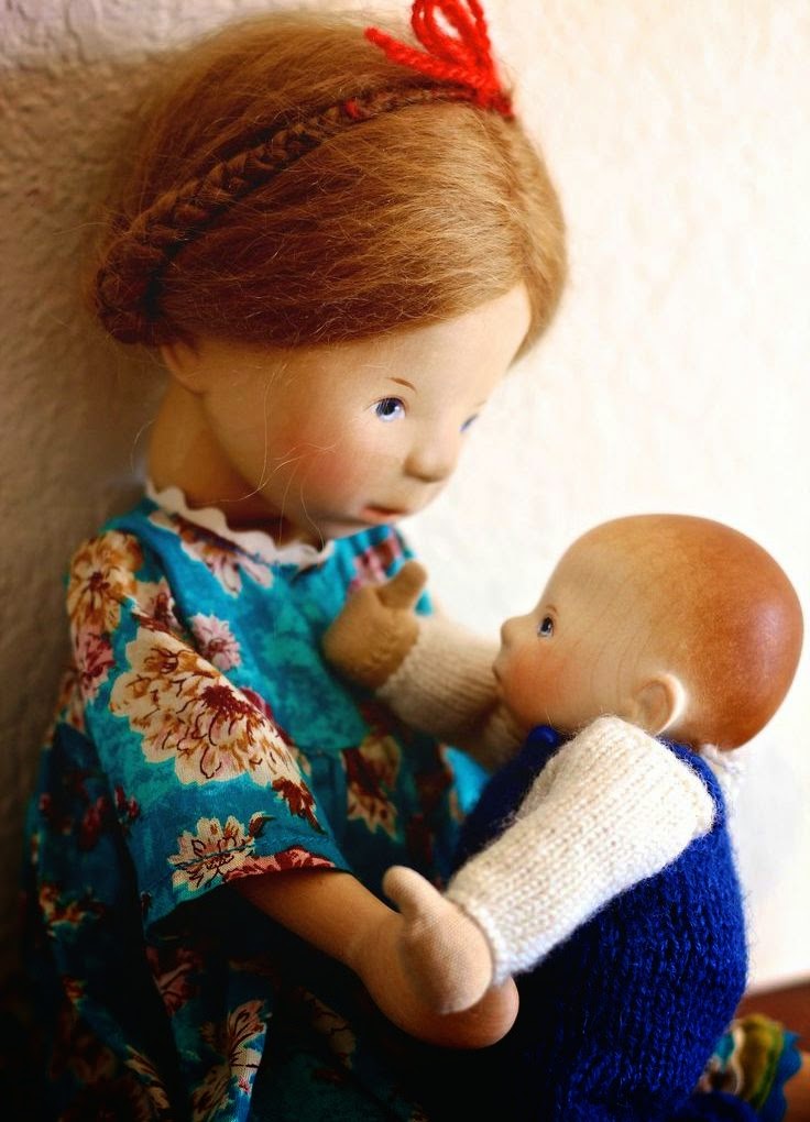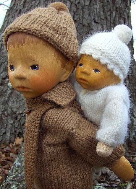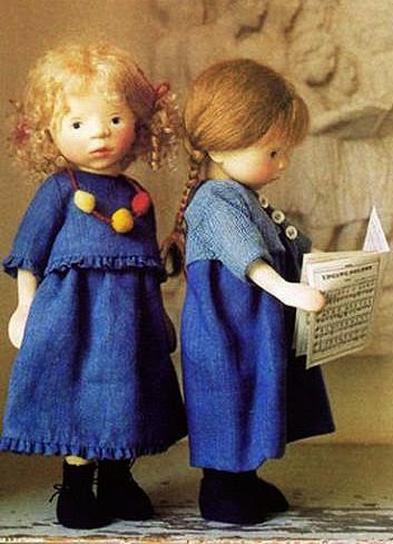 Головки кукол тоже расписаны вручную и «укомплектованы» волосами двух видов – нарисованными или объемными из мохера (реже натуральных волос). На последнем этапе куклу одевают в нижнее белье и дизайнерскую одежду ручной работы. Несмотря на то, что рост готовой куклы достигает 35 см, она очень хорошо сбалансирована и устойчиво стоит на ногах. Изготовление каждой куклы – это долгое и кропотливое занятие, поэтому каждый год на свет их появляется очень мало, а цена на такую уникальную игрушку может доходить до 3000$. И все же главная ценность этих кукол вовсе не в редкости или высокой стоимости. Она в том тепле, которое несут детям эти деревянные мальчики и девочки с ангельски наивными личиками.
