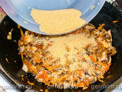 Для начинки голубцов шампиньоны промыть, если есть необходимость, снять с них кожицу, после чего довольно крупно порезать (четвертинками) и обжарить на растительном масле до полуготовности. Добавить тонко нашинкованную морковь, мелко нарезанный лук и жарить все вместе несколько минут, чтобы лук стал прозрачным, а морковь посветлела. Всыпать кускус (крупу быстрого приготовления). Перемешать, приправить по вкусу солью, влить сливки, перемешать и накрыть крышкой. Оставить на маленьком огне около 3 минут. Начинка для голубцов готова.