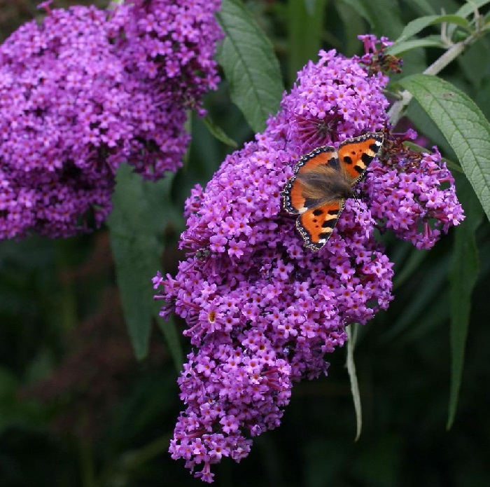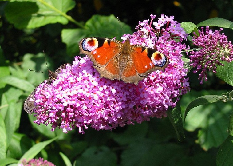Буддлею часто называют «бабочкиным кустарником». На ней часто можно увидеть репейницу, павлиний глаз или адмирала.