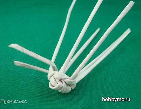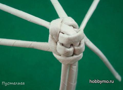 [показать]И начинайте оплетать по кругу, сразу уводя основы назад.