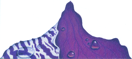 2. Далее я полирую  слои лиловым, и затем снова прохожусь по ним  индиго, ультрамарином и фиолетовым (indigo, ultamarine, and violet). Здесь же я делаю  тени для капель росы.