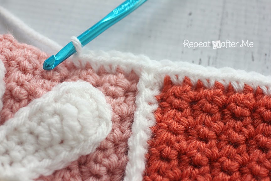 Когда вы дойдете до конца ряда, держите следующие два квадрата вместе и продолжайте соединять.