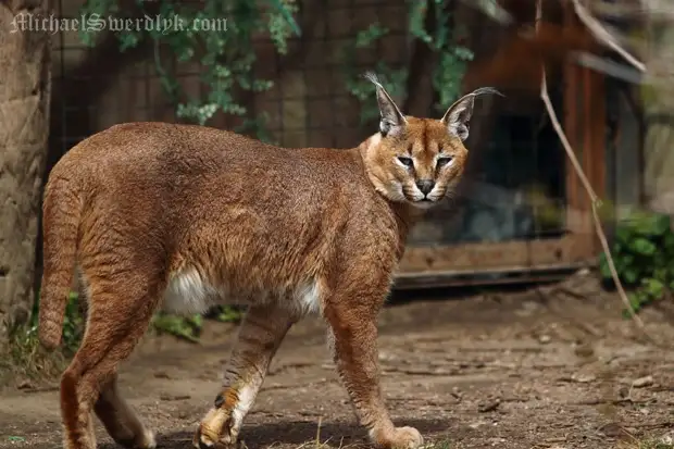 На подушечках лап находится щеточка из жестких волос, которая облегчает передвижение по песку. Ну, а, в общем, размер каракала не превышает размер обычной собаки породы кокер-спаниель.