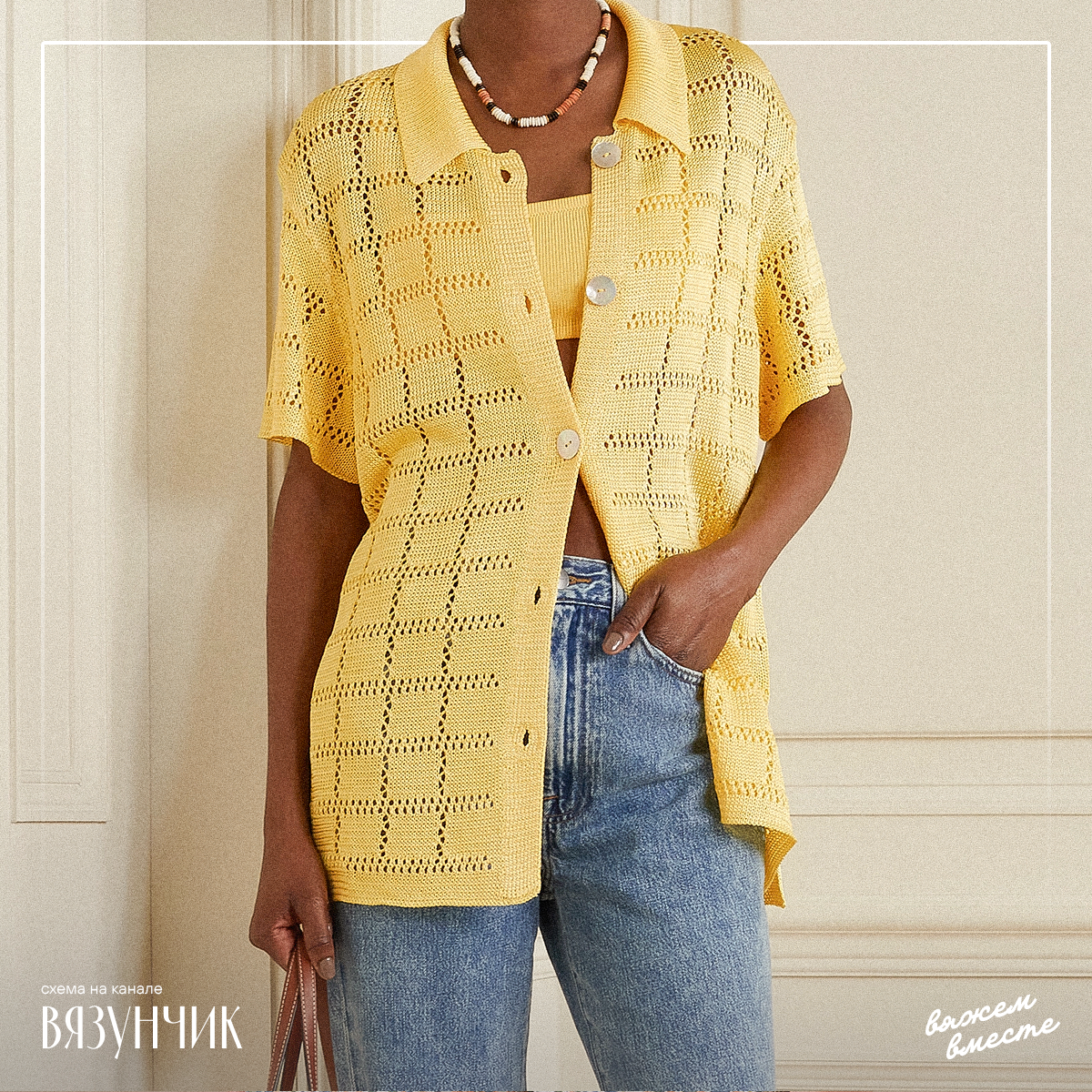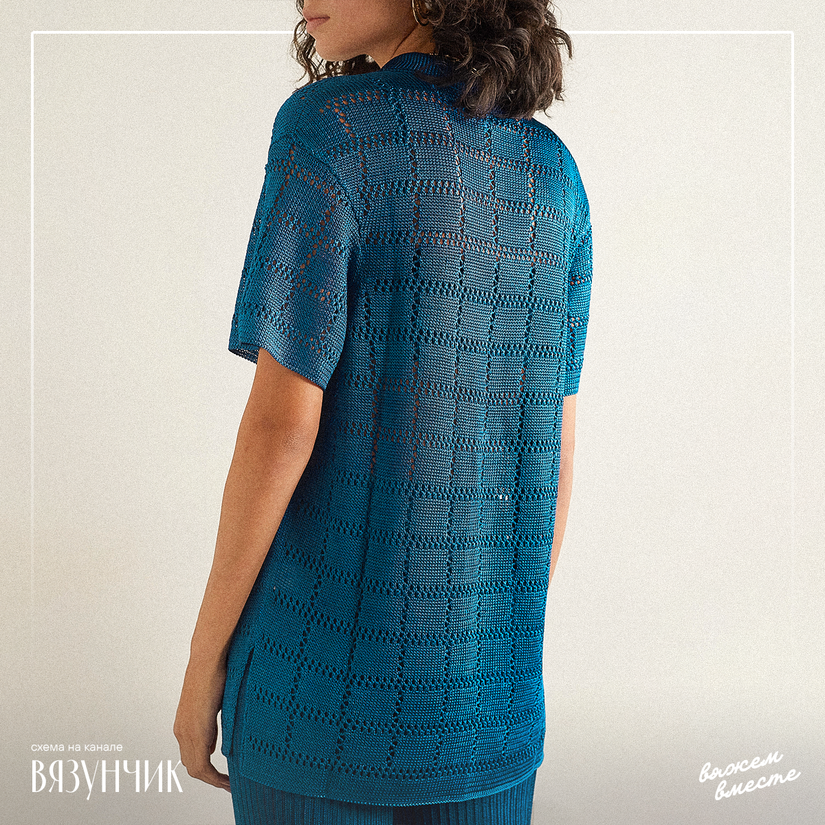 Узор элементарный. Клетка всегда выглядит сдержанно, даже если она ажурная. Мне кажется, вариант поло без пуговиц смотрелся бы не хуже. Но и модель на пуговицах вполне может оказаться актуальной для многих.