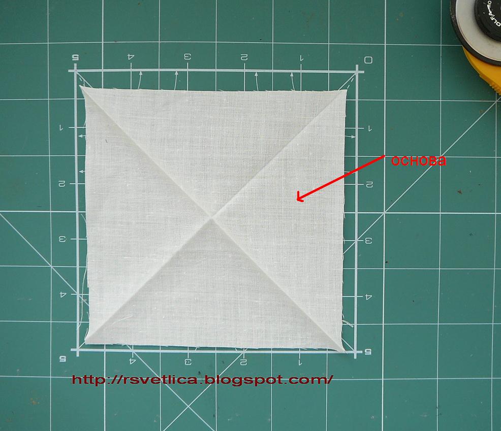 На середину основы наколоть квадрат (очаг) 2,5х2,5 лицевой стороной наружу