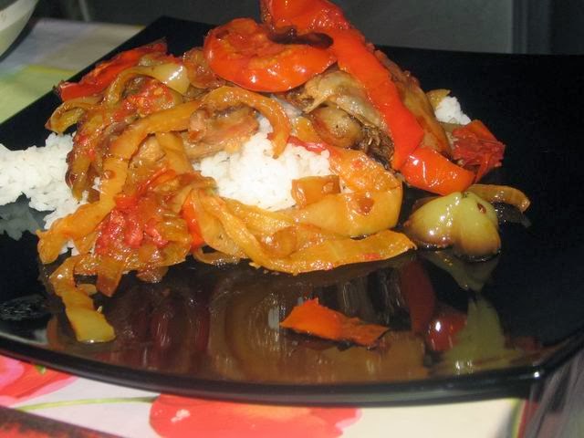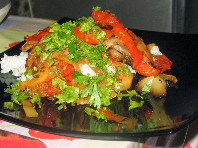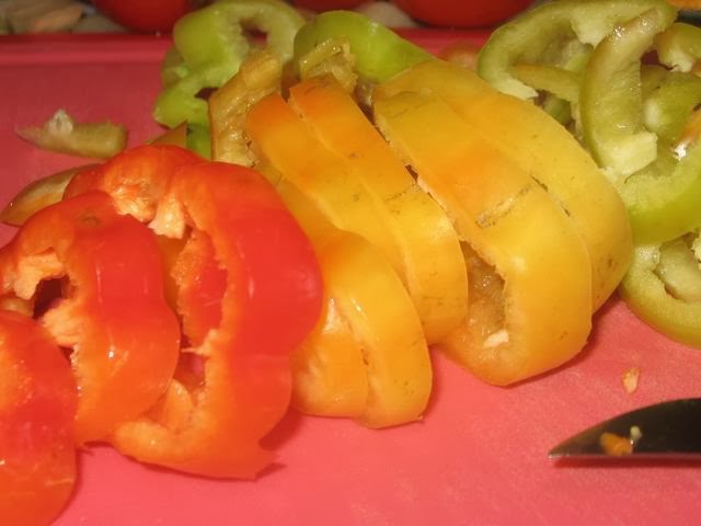 Болгарский перец тоже режес урупно, кольцами или как получится.