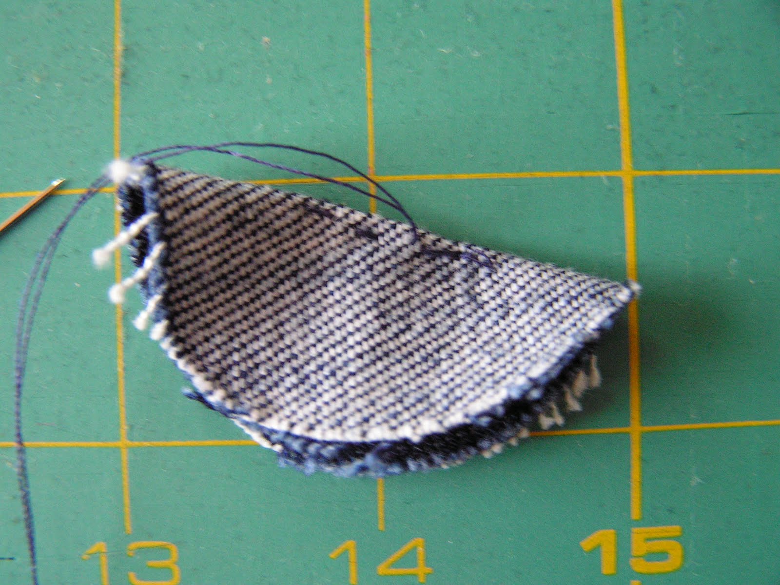 Во-первых, я вырезала несколько кругов в двух размерах. Затем сложила круги пополам и начала шить ...