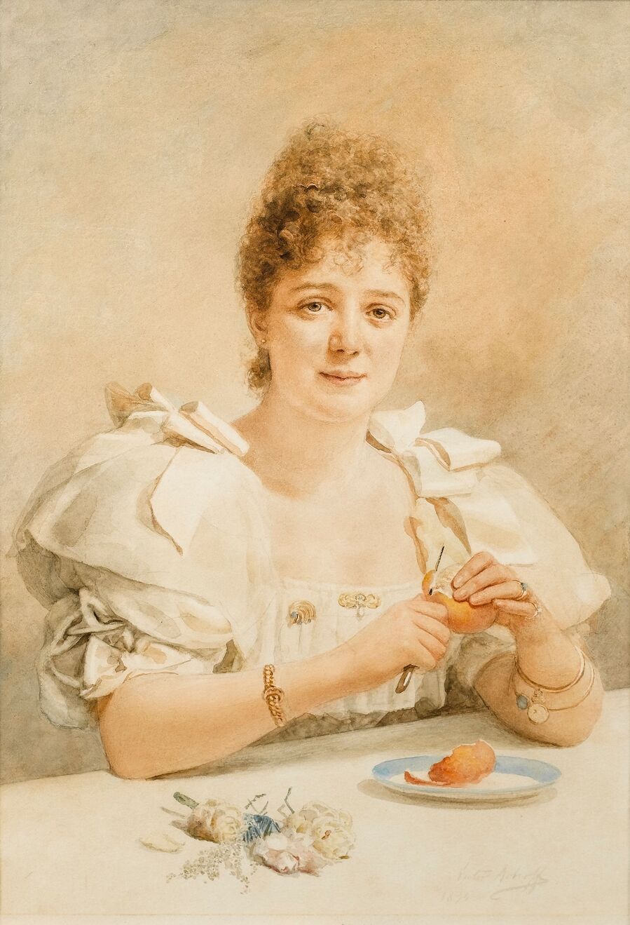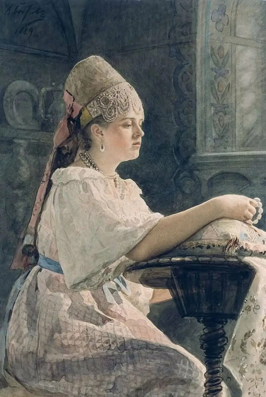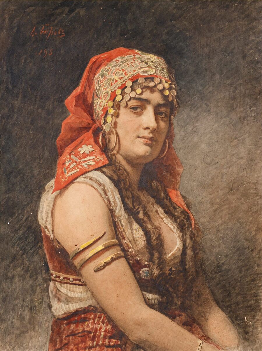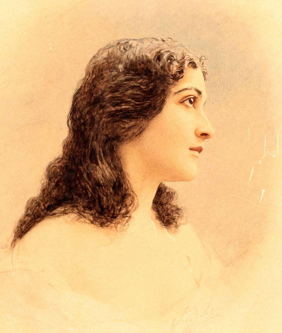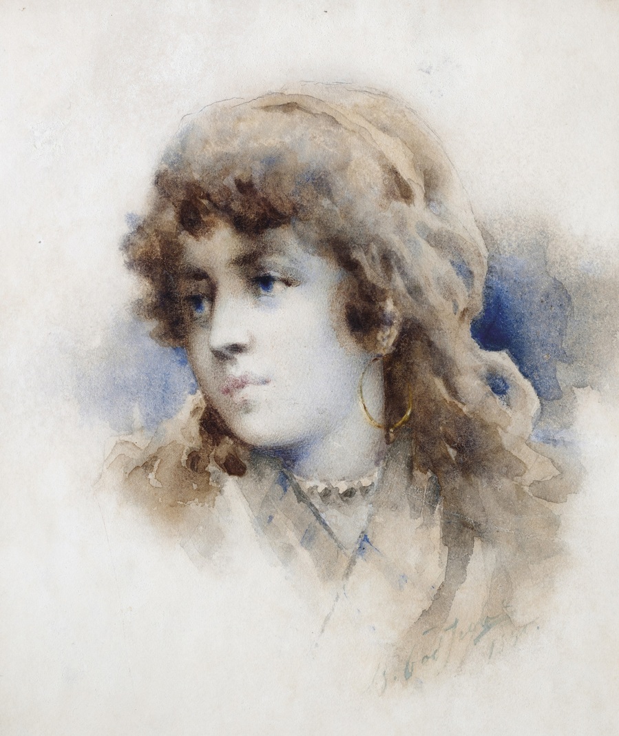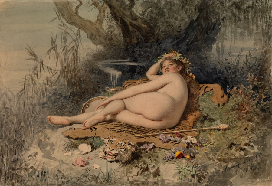 Обнаженная на тигровой шкуре, 1885 г. Карандаш и акварель на бумаге