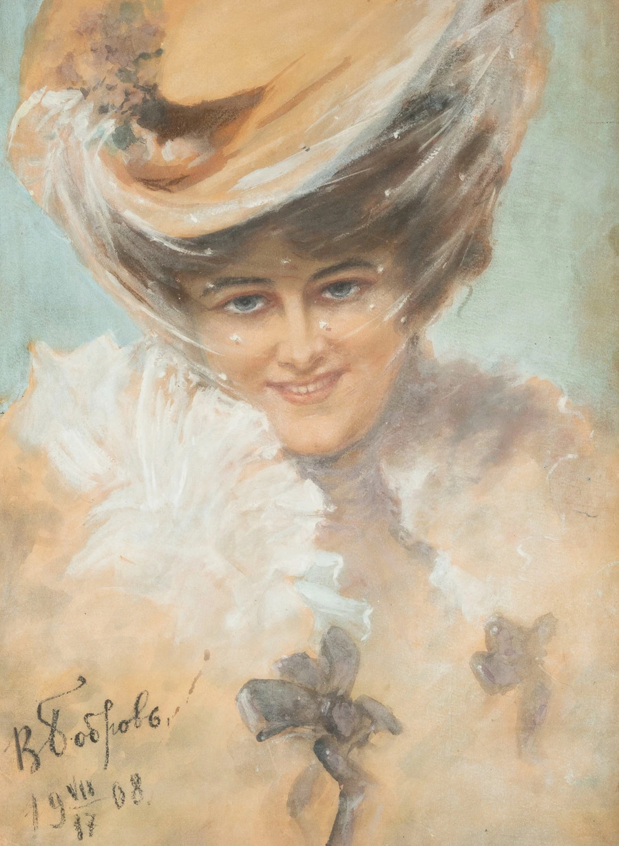 Как портретист отличается правильным рисунком и светлым колоритом. Особенною мягкостью тонов и линий отличаются его гравированные крепкой водкой портреты. Виктор Алексеевич Бобров был прекрасным акварелистом.