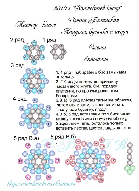 Примечание: Чем больше бис в начальном наборе, тем шире будет листик. Чем больше НП, тем листик длиннее. Я дала оптимальный размер именно для листочка ландыша (узкий, длинный).