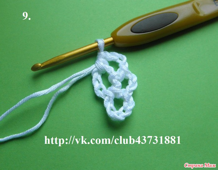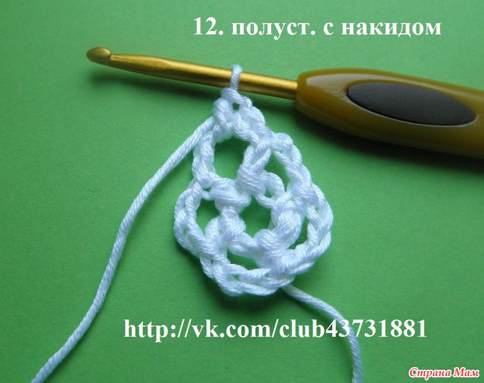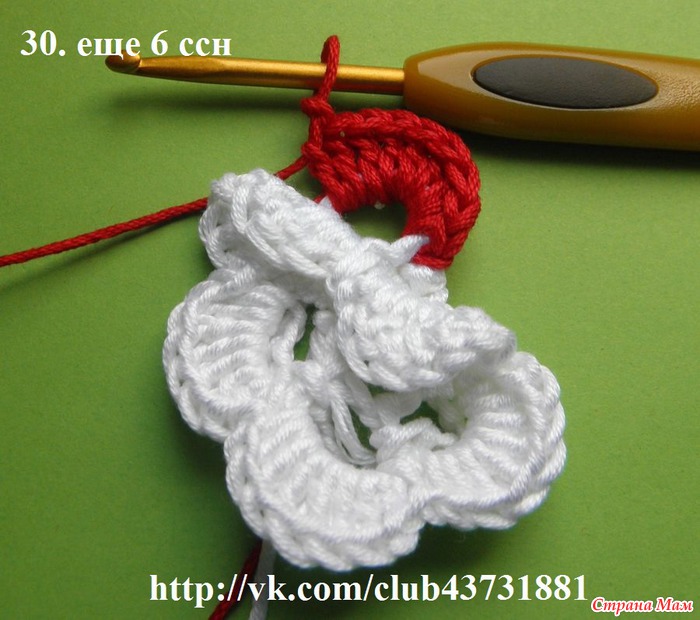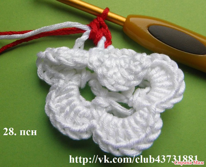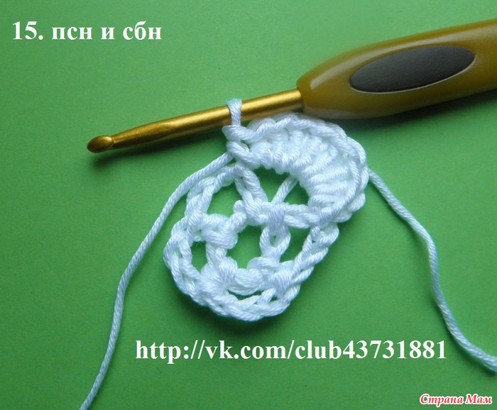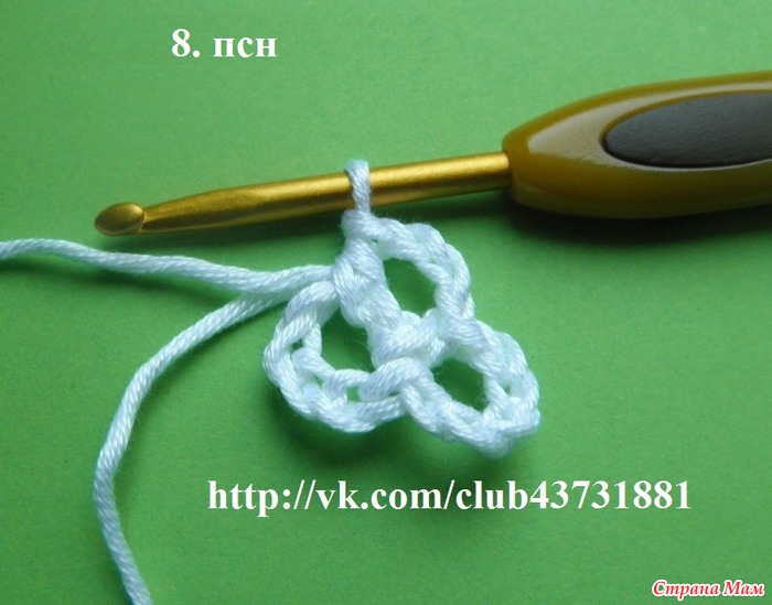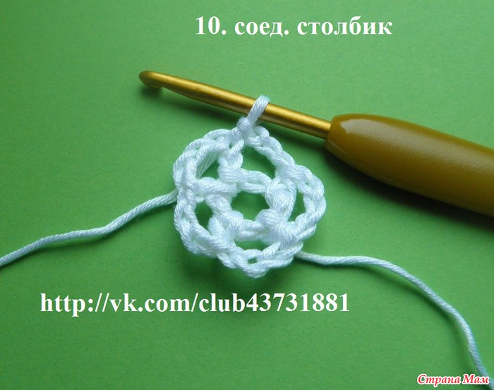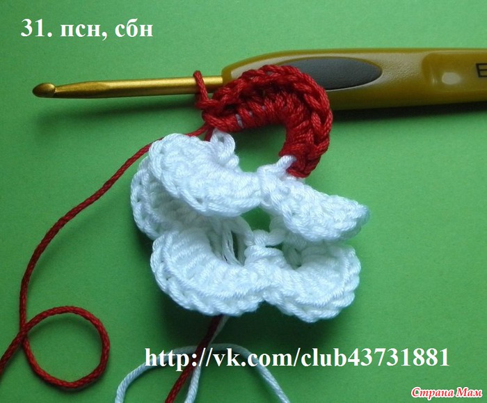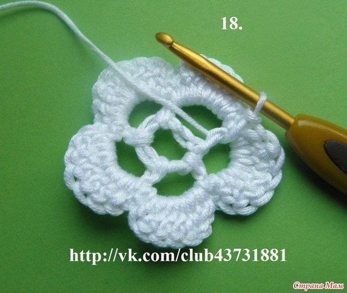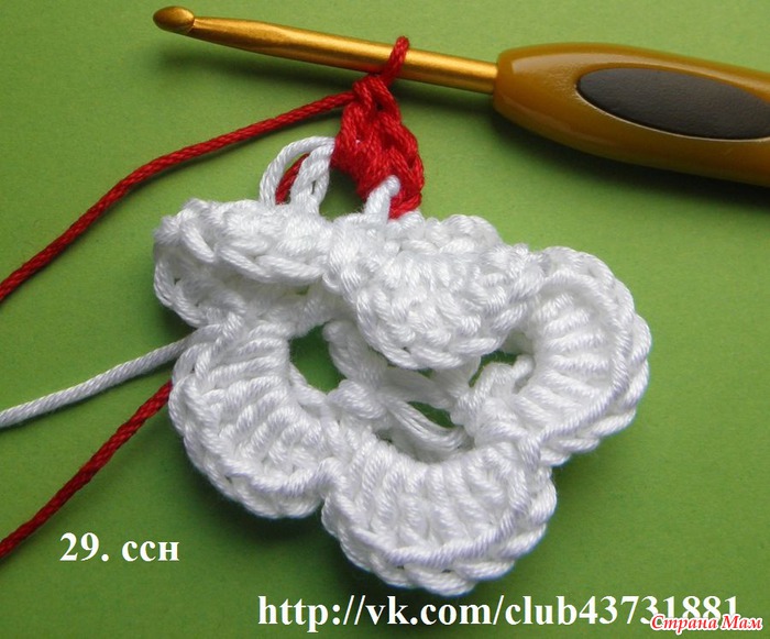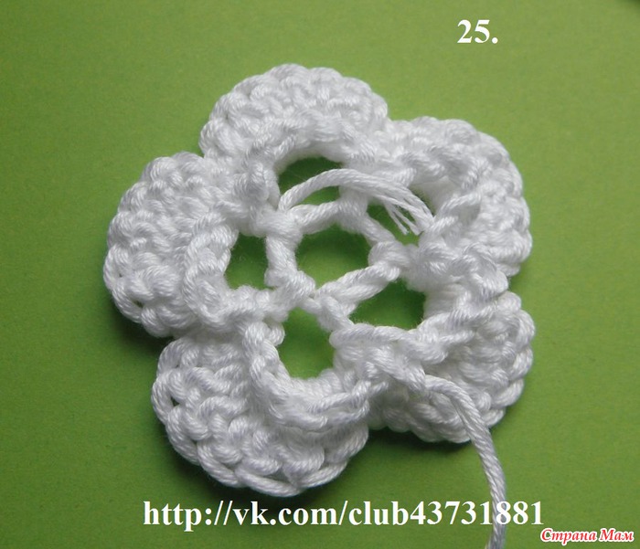 [показать] Так вот, вяжете соедин. столбик под ножку, потом возд. петля и дальше сбн (все есть дальше на фотках). А потом вяжете нижний ряд для лепестков. Тогда у вас в месте соединения будет так, как между остальных лепестков и цветок будет выглядеть очень аккуратно.